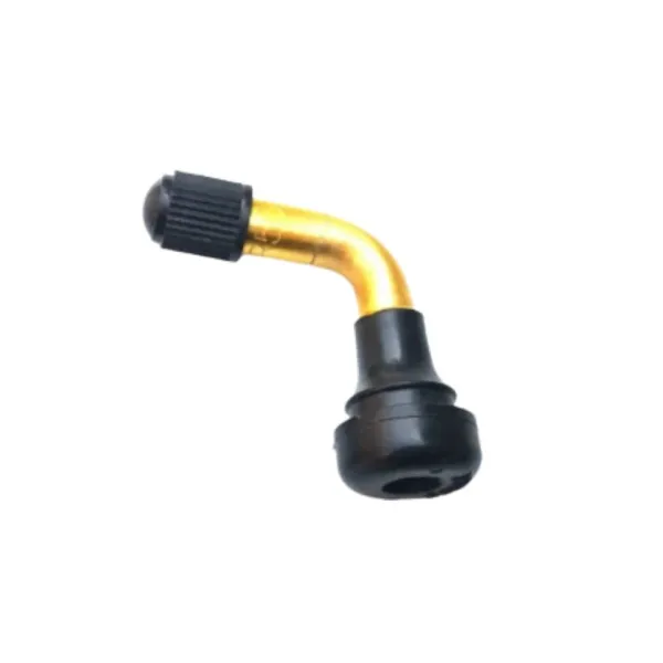 Bøjet ventil til slangeløse dæk. Ventilen måler 17 mm nede i gummien og 7 mm oppe ved ventilhovedet. Derfor passer den på større el-løbehjul, men slangeløse dæk der bruger 90/90 ventil.